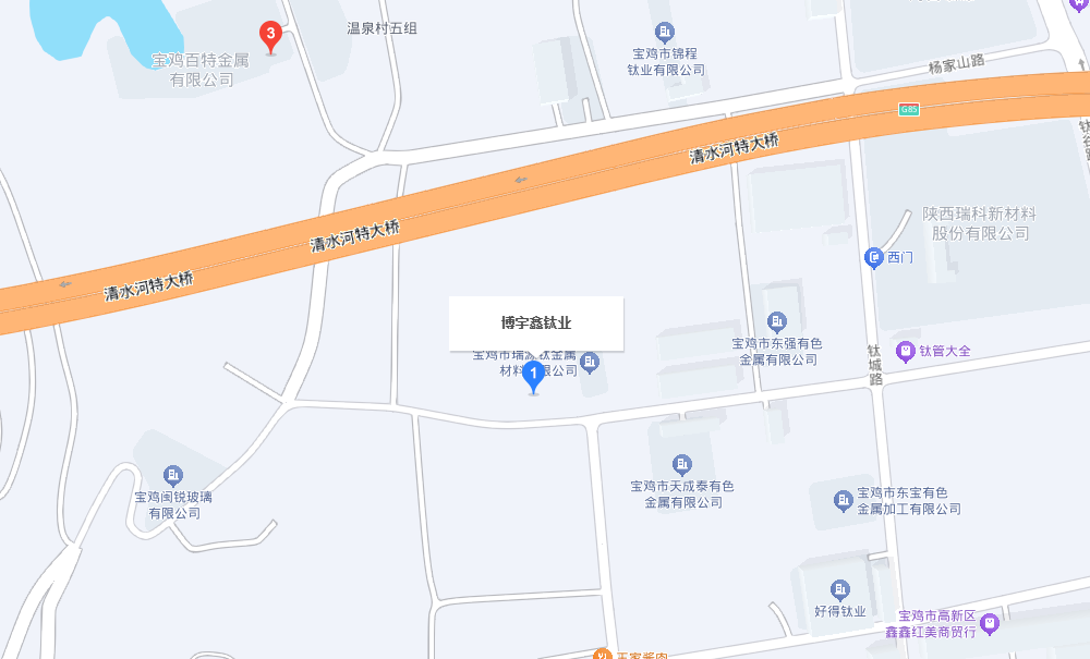 宝鸡博宇鑫钛业有限公司 地 址:中国.陕西.宝鸡市钛城路中段(温泉村口) 邮 编:721014 曹经理:17629094948 杨经理:13571745611 座 机:0917-3551036 传 真:0917-3551036 苏女士:13992739772 座 机:0917-3388219 网 址:www.bjbyxbc.com 邮 箱:2023628570@qq.com